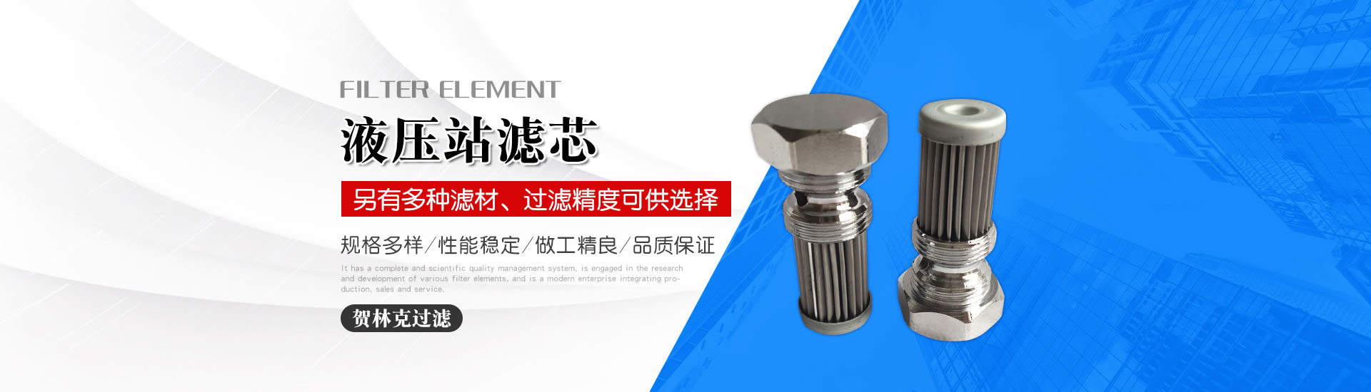 從事各種濾芯的研制和開發,集生產、銷售、服務于一體的現代化企業,產品主要有風電濾芯、賀德克濾芯、齒輪箱濾芯、液壓油濾芯、非標定制濾芯等等。
